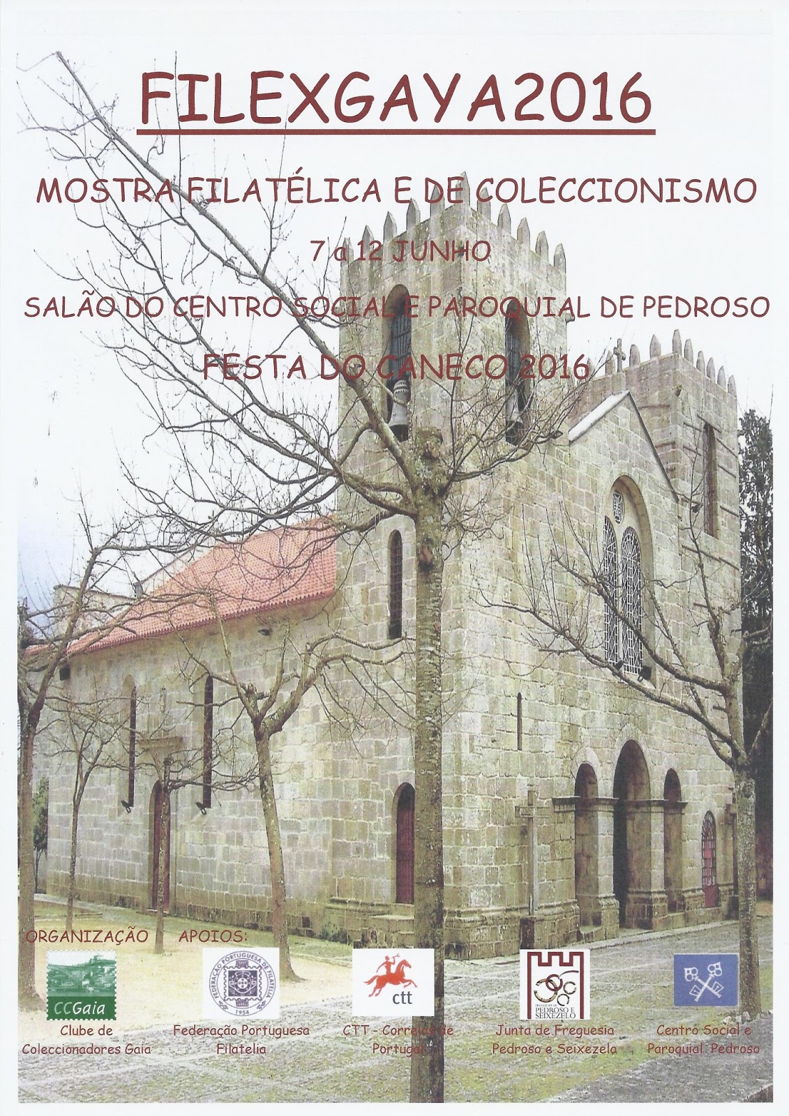 O Clube de Coleccionadores de Gaia organiza a sua Mostra de Filatelia anual, a "Filexgaya2016", de 7 a 12 de junho, no Centro Social e Paroquial de S. Pedro de Pedroso, Vila Nova de Gaia.